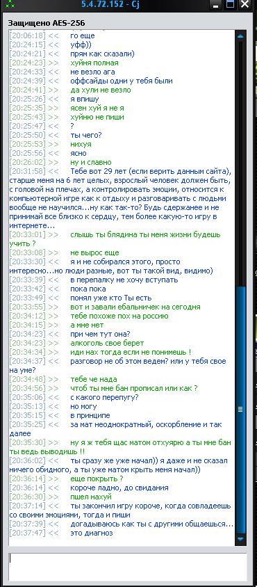Или тут была какая-то провокация? Я даже изначально и не думал сюда писать, но продолжение разговора меня это вынудило...Вроде как простое общение и вдруг такое...Если Вы против моего решения, то пишите конечно свои аргументы того почему я не прав, но это уже не первый раз (да и поглядел, что и Санта ему когда то 2 предупреждения выписывал), это уже получается (если официально) 4ый раз. Не дело ведь. Или будем устраивать тут быдло-сайт? Друг друга помоями поливать из-за какой-то игры компьютерной? Я считаю, если этого вовремя не пресечь, то и будет тут мат через мат, а не игра. Вот мои доводы.