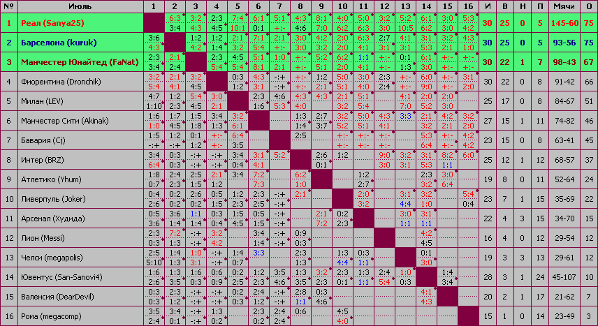 Напоминаю, что не учитывались "взаимные вызовы", так и не сыгранные в дальнейшем.