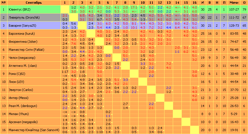 Игрок-бомбардир - Бавария (Sanya25) Игрок, пропустивший наименьшее число мячей - Ювентус (BRZ)