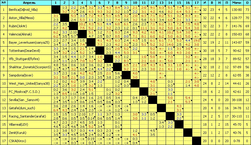 Финальная таблица